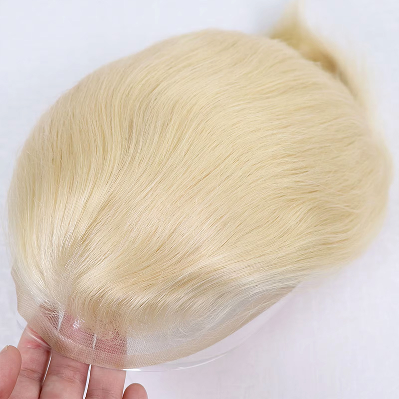 #60 Platinum Blonde Hair Replacement System Hairpieces 8"x10" Base Size for Men