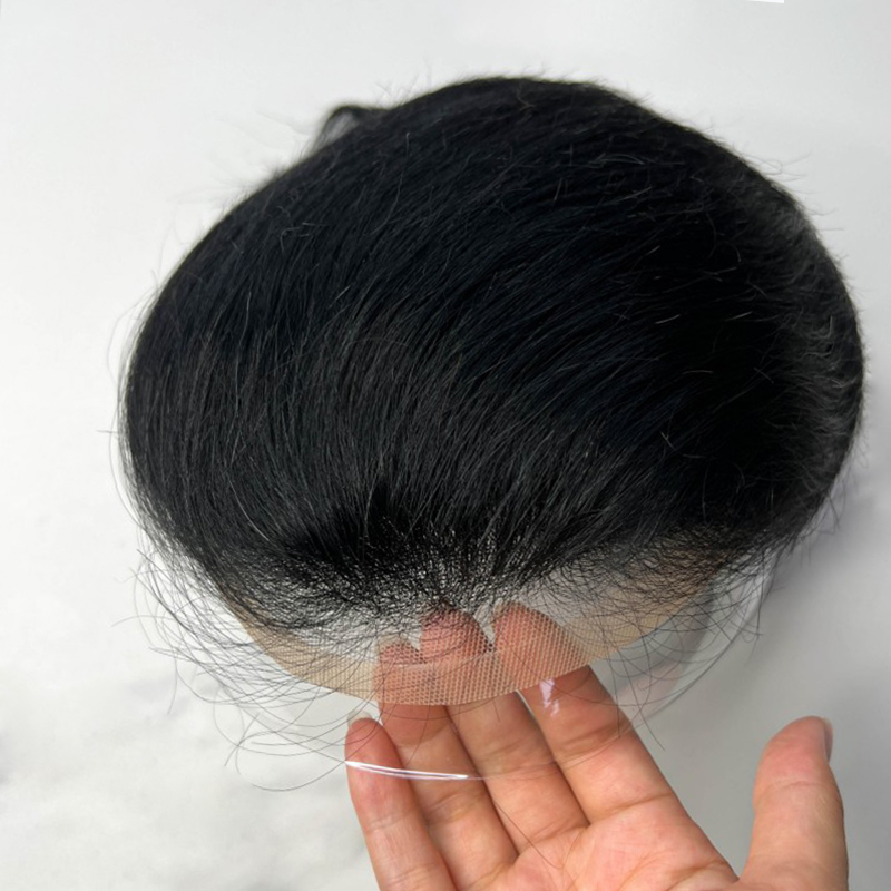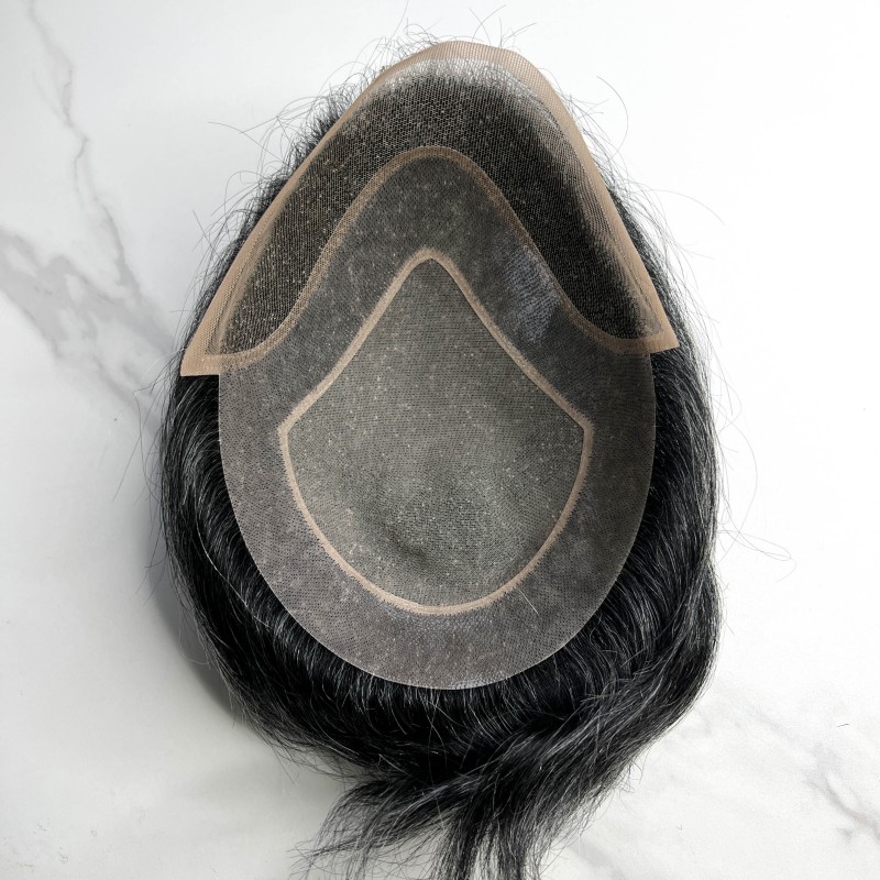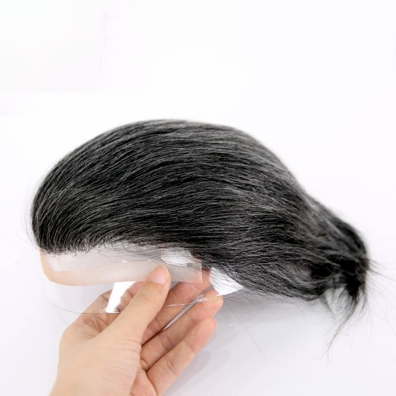 Hair Material Remy Human Hair Base Size 8''x10'' inches Base Design Mono with PU around Base Base Material Mono, PU, and French Lace Hair Length 6", can be cut to any length you want Hair Density Medium (130% Density) Advantage Breathable, durable, easy to attach, natural front hairline, can be styled freely Preparation Method 100% Hand Tied, No Tangle and Shedding Free Package 1 Toupee + 6 pieces CC contour tape This is a Natural hairline French lace front & top with a Clear Poly Skin toupee for men, soft, comfortable & Breathable, and has a long lifespan. You can restyle it, just like your own hair.