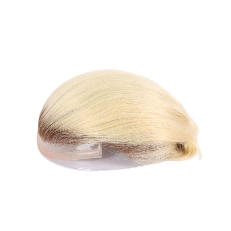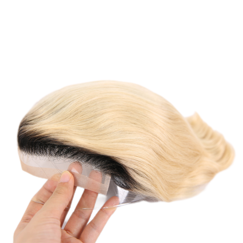 Ombre Blonde Human Hair Toupee Wig Mens Replacement System Mono with PU around Base Wig Toupee